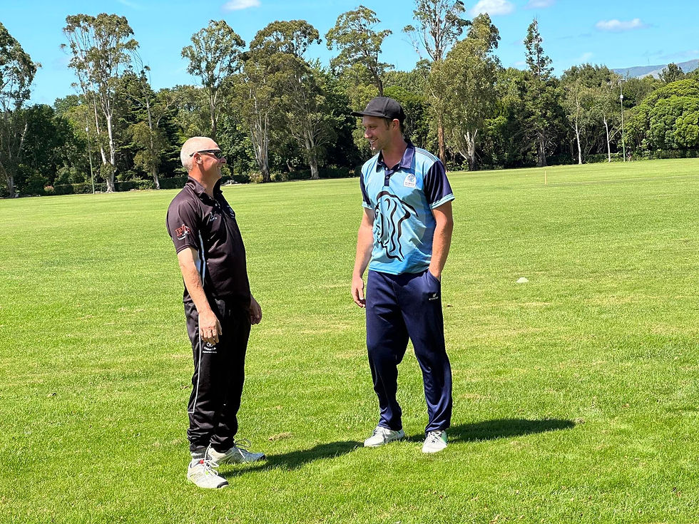 Trout went to do the toss but came away with some sort of agreement with Rick that we would bowl. No coin required. The deck on Ongley 11 looked great but the large amount of rain during the week was bound to have an effect on how it played.